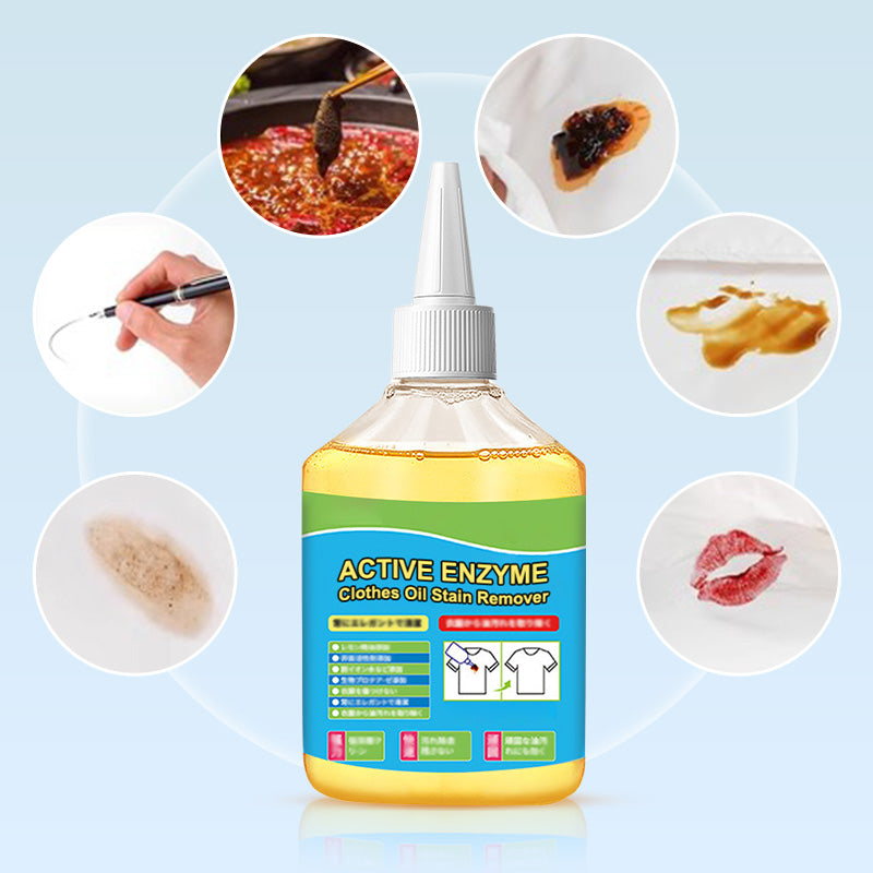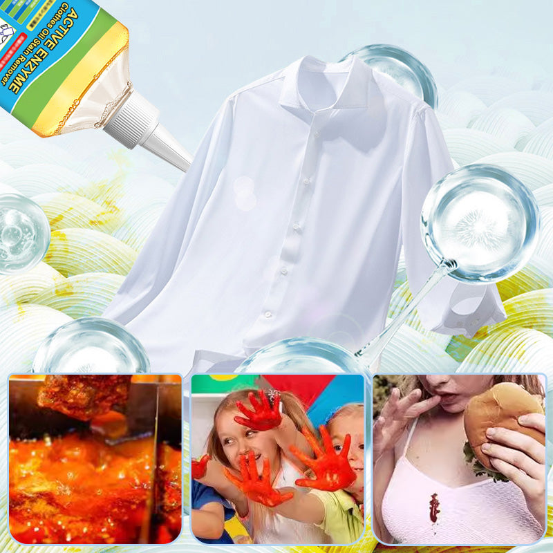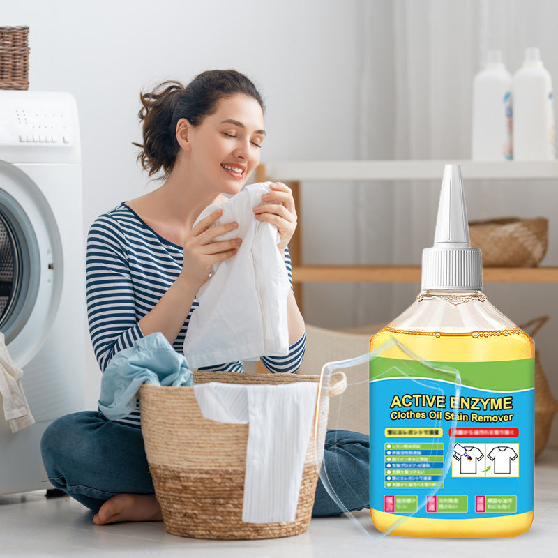 ACTIVE ENZYME CLOTHES OIL STAIN REMOVER - A professional-grade stain remover that effectively eliminates stains from clothes. Works on all fabrics and can tackle various types of stains, including oil, grease, and food stains.
