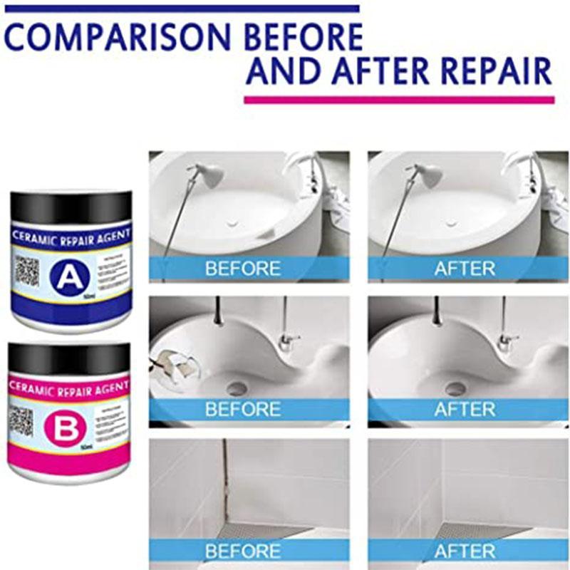- The repair paste is great for repairing the bathroom or kitchen sink, bathtub, or ceramic floor with no marks. The paste is made of non-toxic material that is safe to use in the indoor areas. It restores the beauty of your ceramic item like brand new. Let's get it now!