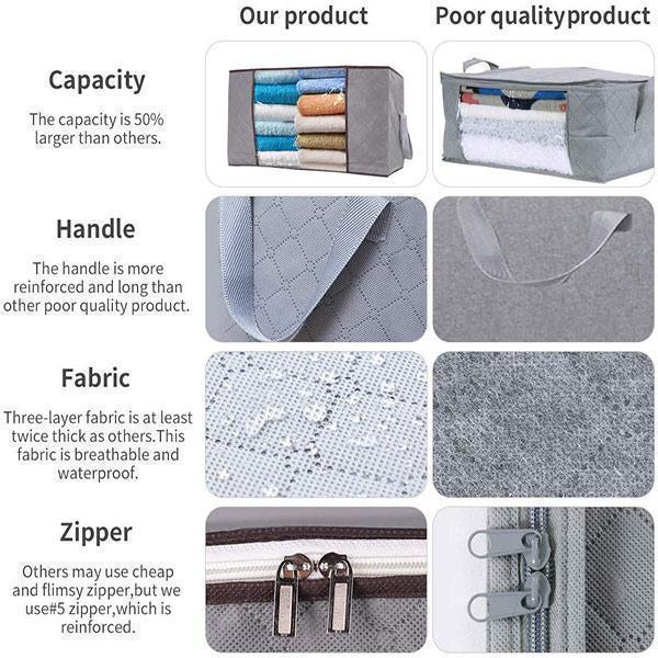 Made of durable multi-layer composite non-woven fabric with dry and breathable features, ensuring that stored items are protected from moisture and dust. You don't need to worry about your clothes or comforters being moldy. -