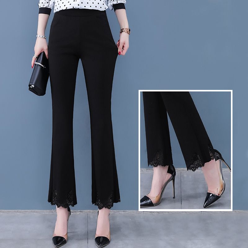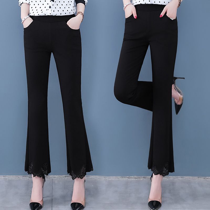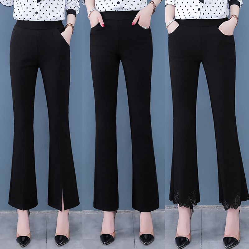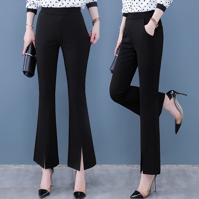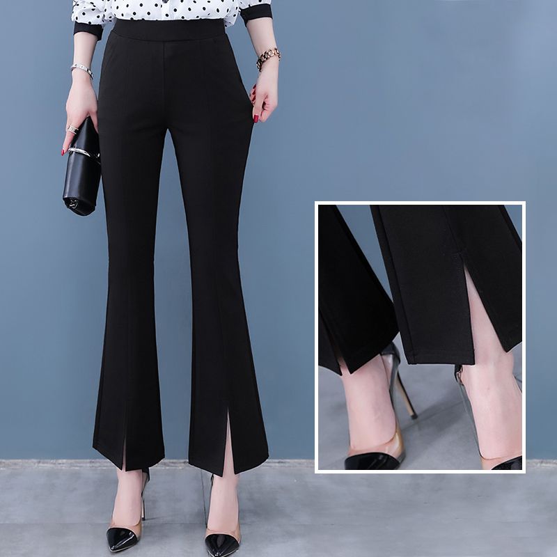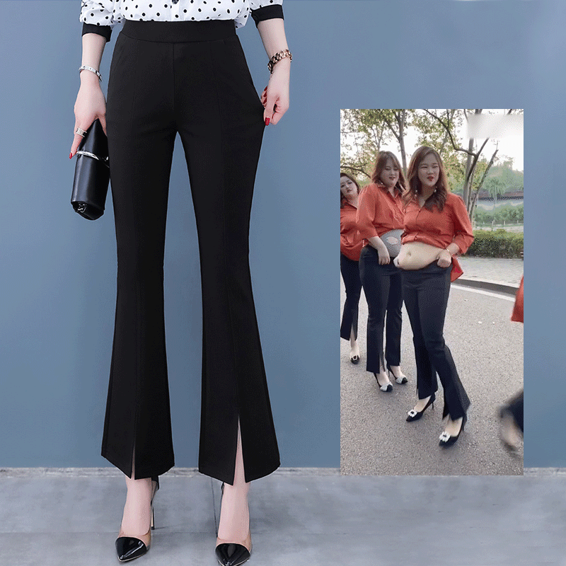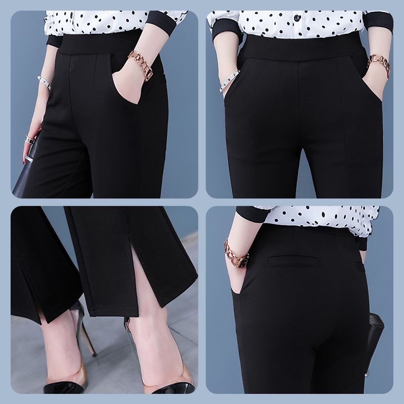 High-waisted cropped pants with flare leg and slit cuff design, making you look slim and fit, comfortable to wear.