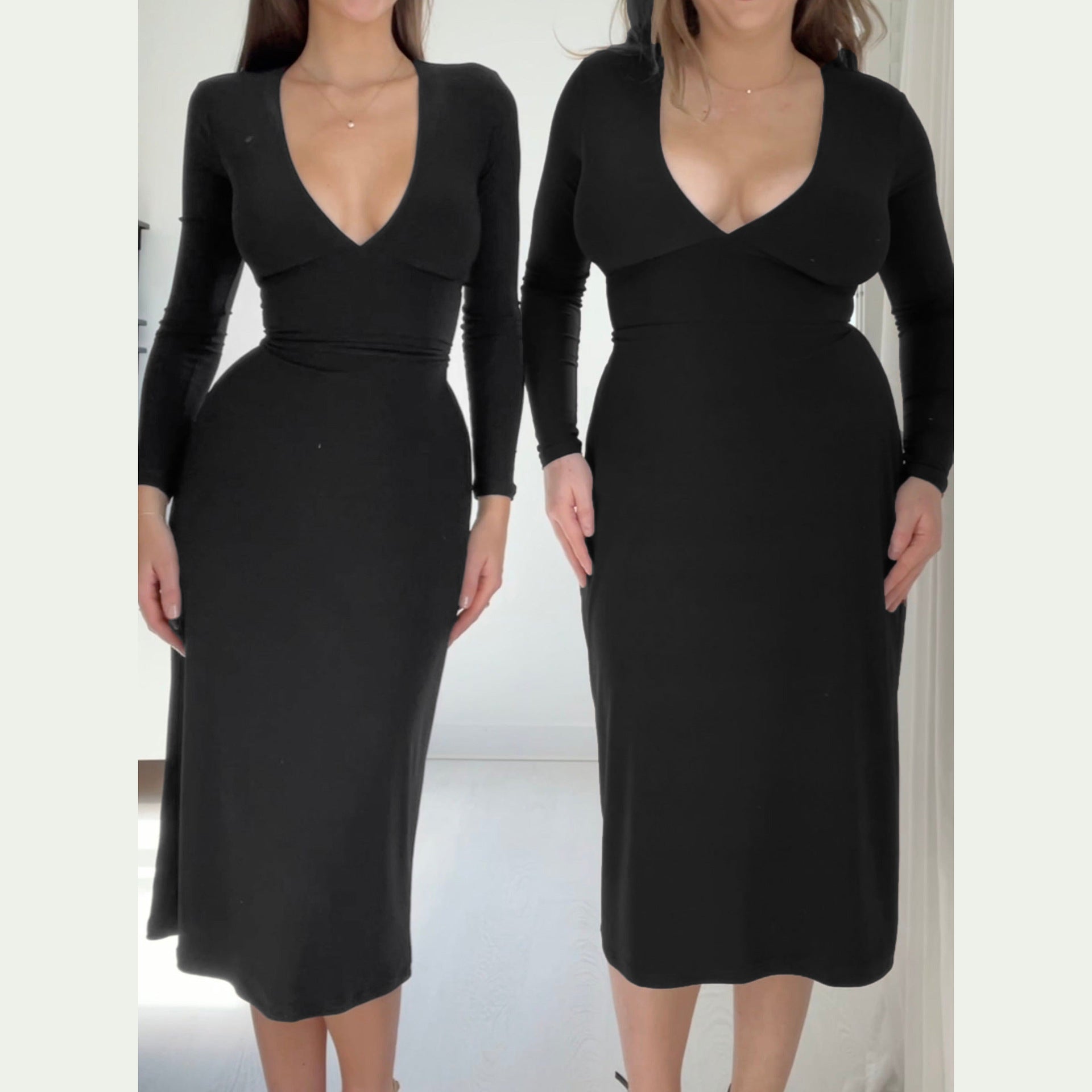【Soft and Comfort】The deep V neck dress is made of comfortable, soft stretchy 95% Polyester, 5% Elastane. fabric, elastic quality makes long sleeve dress fits for most figures. Suitable for women wear during spring,autumn, winter.