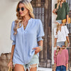 Spring and summer V-neck half-sleeve jacquard shirt