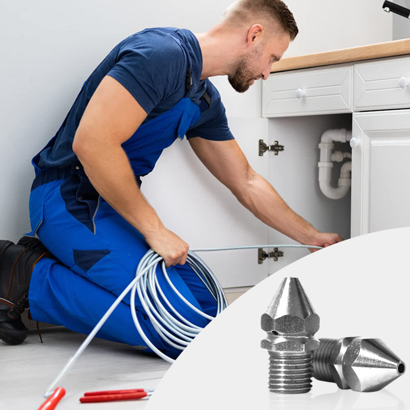 Efficient Cleaning - The sewer nozzle features 1 front jet and 3 rear jets, making it perfect for flushing and cleaning pipes. It can efficiently clean soft sewer blockages such as grease, fine sand, hair, fine gravel, and general waste blockages.