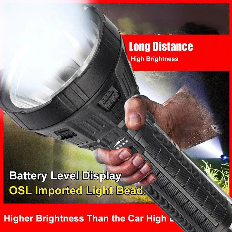 LED POWER DISPLAY - Stay informed with the LED power display, showing battery levels at 25%, 50%, 75%, and 100%. Never be caught off guard; plan your recharges for extended outdoor adventures or emergency situations. Our flashlight keeps you in control.