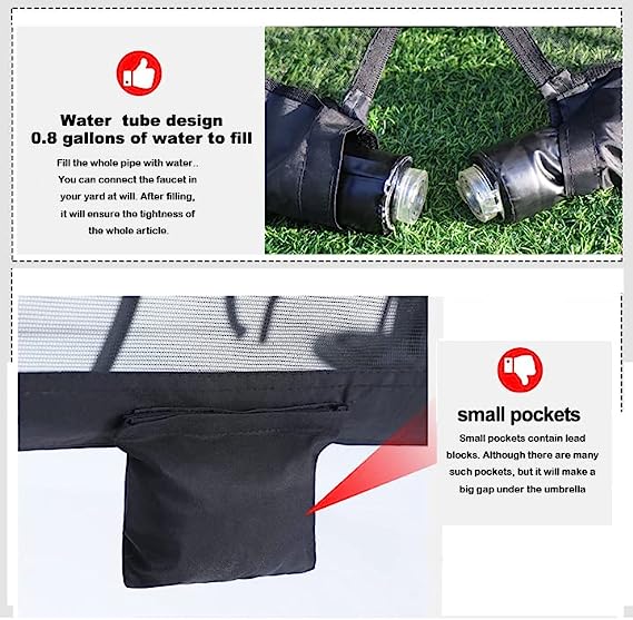 - ☀ WATER TUBE BASE LIGHT-WEIGHTED NETTING: The mesh netting can easily be set over the patio umbrellas. Water tube design filling the tubes along the base with water to help keep the screen in place. It takes 0.8 gallons of water to fill the pipe. The adjustable top cinch closure provides a flexible fit. The screen with zipper. When not in use, the screen tent for umbrella netting folds up to a compact size for convenient storage. It is only 2.79lbs.