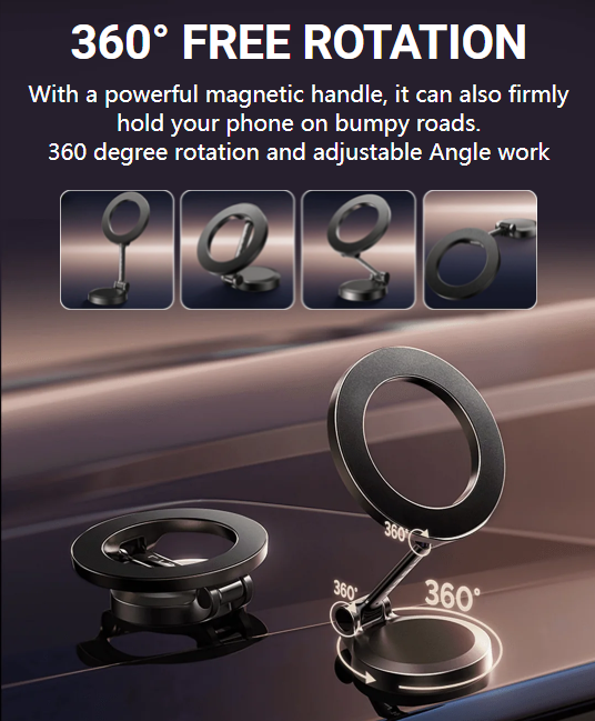 It features a powerful magnetic grip that securely holds your phone in place, even on bumpy roads. Plus, 360-degree rotation and angle adjustable function allow you to find the perfect angle for hands-free viewing.
