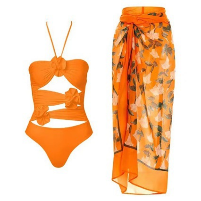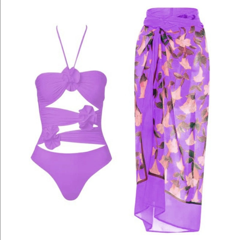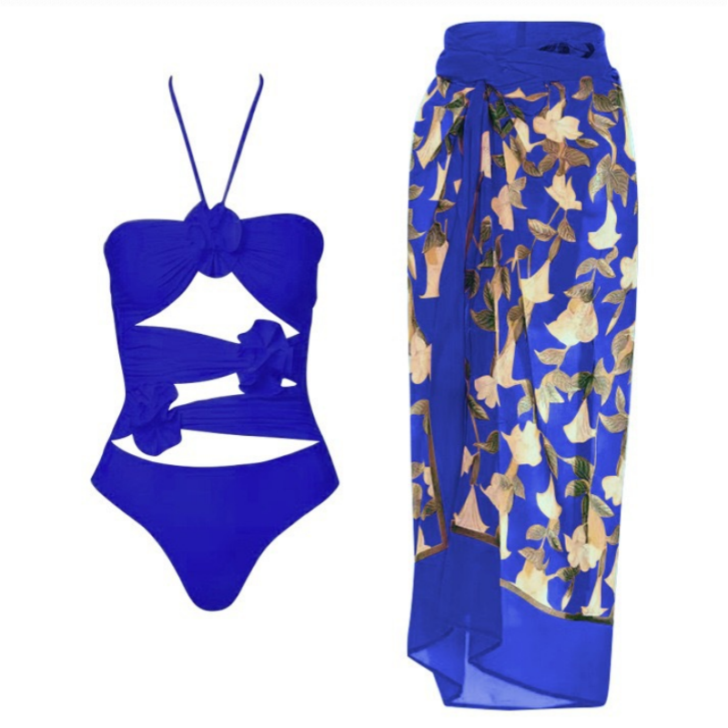 Women's Fashional Flower Prints One Piece Swimsuit and Skirt