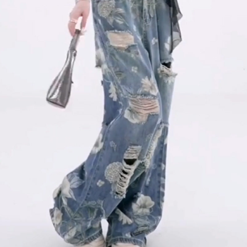 Package Include: 1* Women's Loose Ripped Wide-Leg Denim Jeans