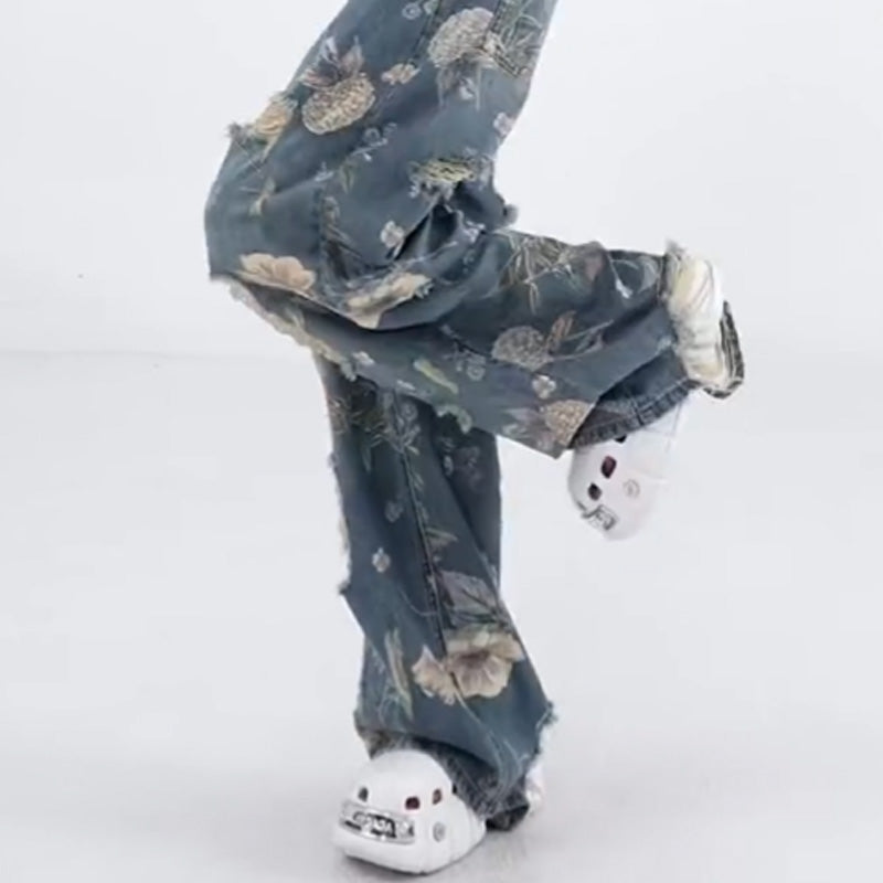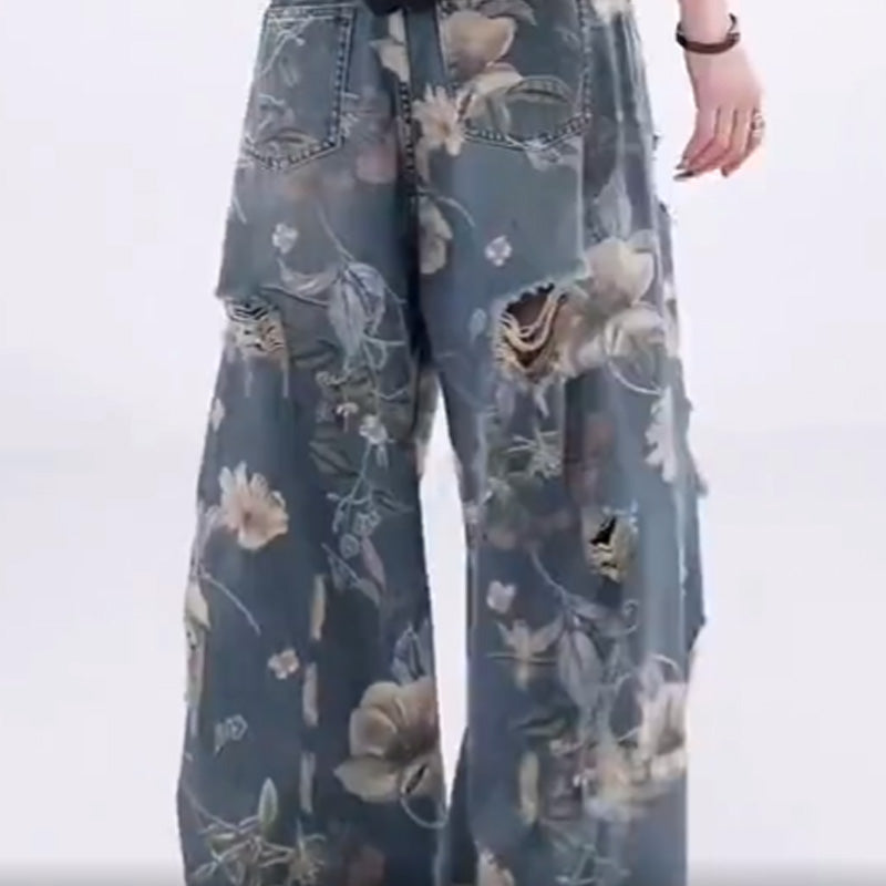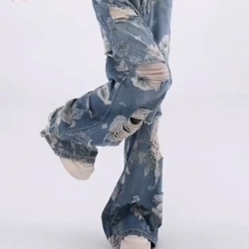 Women's Loose Ripped Wide-Leg Denim Jeans